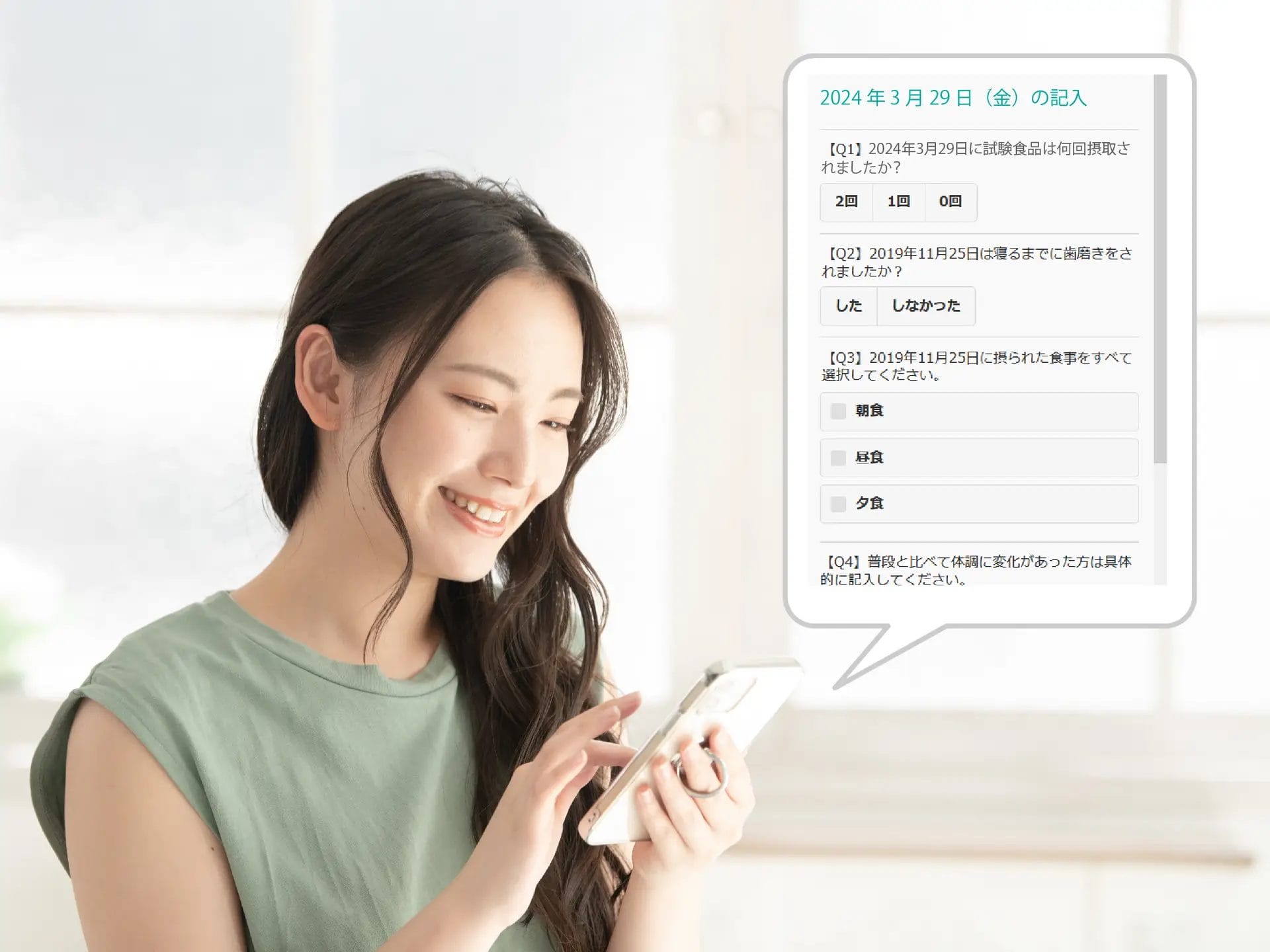 被験者は、日々の体調情報をスマホやPCを利用して簡単に記入できます。